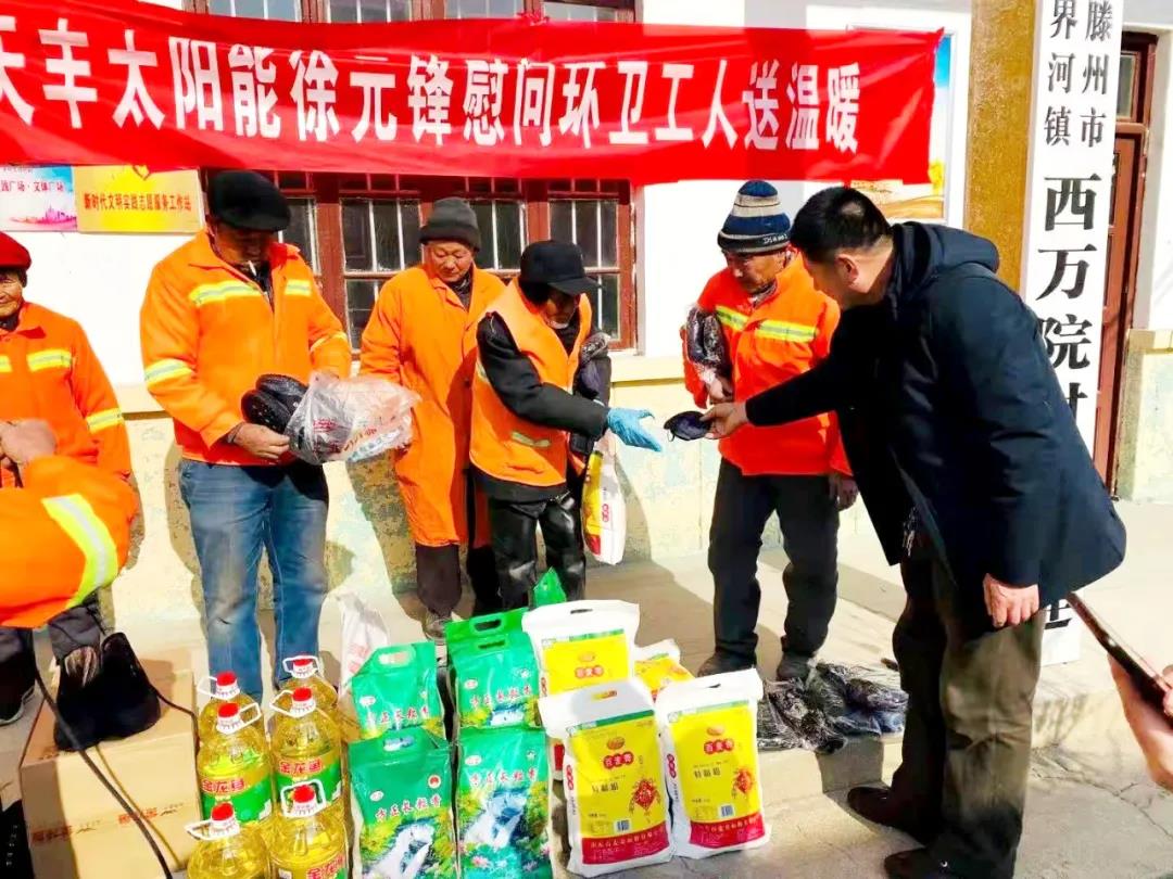 近日寒潮來襲、氣溫驟降,環衛工人作為城市的美容師,每天起早貪黑,用自己辛勤的汗水維護著干凈整潔的市容環境,為了表達對環衛工人辛苦付出的感謝,切實關心關愛環衛工人冷暖,2021年1月14日,天豐優秀代理商徐元鋒趕赴滕州,在嚴寒之際為環衛工人送去了特別的“溫暖”。