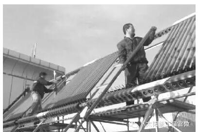 2.安裝中注意細(xì)節(jié):首先組裝太陽能支架,再裝水箱,連接輸水管道,然后打開上水閥門上水,水從插口處溢出后再裝真空集熱管(此時裝真空管避免空曬,即使室外溫度再高也不會炸管)。